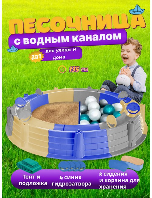 Технические характеристики: Бассейн-песочница детская сборный с чехлом (серый, синий, бежевый). Универсальный и многофункциональный игровой комплекс для детей, который легко трансформируется из песочницы в бассейн и даже в сухую игровую зону с шариками. Яркая круглая конструкция с двумя сиденьями, водным каналом и съемным чехлом станет любимым местом для игр на даче, во дворе или в помещении. Наполняется водой для летнего освежения благодаря гидрозатворам и водному каналу. Специальный желоб создает эффект водной речки, добавляя увлекательный элемент в игру. Каждое сиденье выдерживает нагрузку до 100 кг. Легко собирается и разбирается, компактно хранится, легкий вес и удобная транспортировка. Бассейн-песочница детская сборный с чехлом подарит детям часы увлекательных игр, развивая творчество, воображение и физическую активность.
