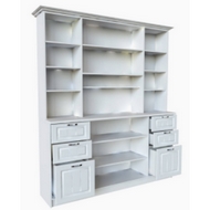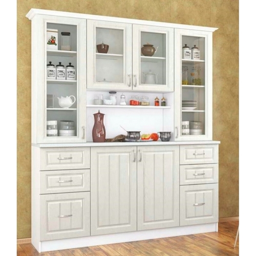 Технические характеристики: Классический напольный буфет. Нижняя часть буфета оснащена двумя распашными дверцами и шестью выдвижными ящиками. Верхнее отделение с 4-мя застекленными дверцами. Корпус изготовлен из ЛДСП белого цвета с тиснением "древесные поры". Фасады облицованы матовой ПВХ пленкрй толщиной 0,3 мм. Столешница и цоколь представлены в белом цвете с тиснением "древесные поры". Цвет может отличаться от представленного на фотографии.