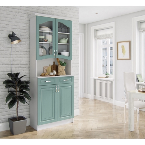 Технические характеристики: Классический напольный буфет. Буфет оснащен закрытым отделением с распашными дверцами, двумя выдвижными ящиками и отделением с застекленными дверцами. Корпус изготовлен из ЛДСП белого цвета с тиснением "древесные поры". Фасады облицованы матовой ПВХ пленкрй толщиной 0,3 мм. Столешница и цоколь представлены в белом цвете с тиснением "древесные поры". Цвет может отличаться от представленного на фотографии.