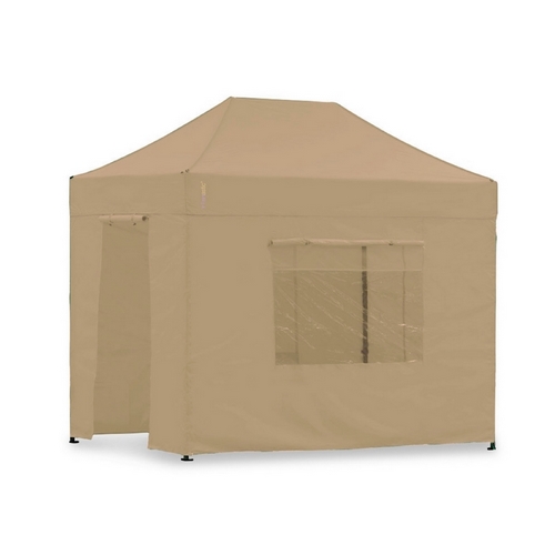 Технические характеристики: Быстросборная палатка со стенками на липучках. 2 прозрачных окна со шторками, которые при необходимости можно свернуть и зафиксировать над окном. Дверь с двумя застежками-молниями также сворачивается и фиксируется в верхнем положении. Состоит из металлического каркаса и натяжной тентовой ткани с водостойким покрытием ПВХ. Сборка и установка шатра занимает около 5 минут.