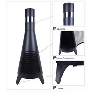 Технические характеристики: Чаша для костра с дымоходом для готовки. Круглая хромированная решетка для приготовления пищи. Устойчивые металлические ножки. Размеры чаши для огня составляют d45*0,8 мм.