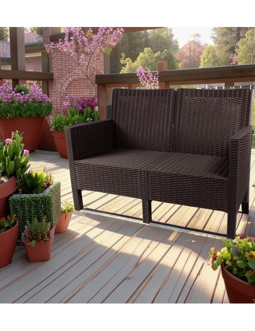 Диван двухместный садовый под ротанг СадКо (темно-коричневый)