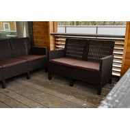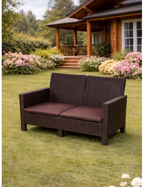 Диван двухместный садовый под ротанг СадКо (темно-коричневый с коричневой подушкой)