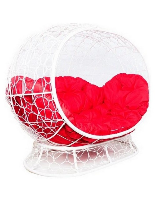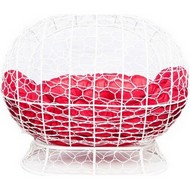 Диван УЛЕЙ на ножках с ротангом (белый с красной подушкой)