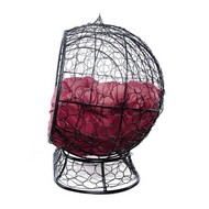 Диван УЛЕЙ на ножках с ротангом (черный с бордовой подушкой)