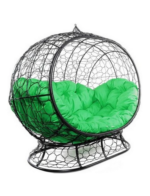 Диван УЛЕЙ на ножках с ротангом (черный с зеленой подушкой)