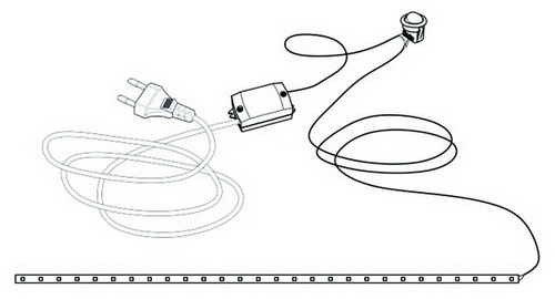 Комплектация: две светодиодные линейки, пластиковый профиль и шнур с выключателем.