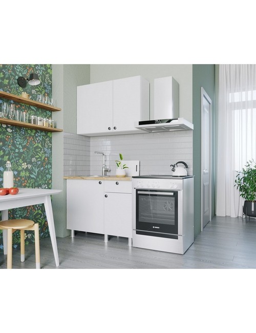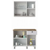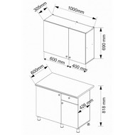 Комплектация: столешница - 100x60x2,8 см, тумба под мойку - 60x42,6x81,8 см, тумба с выдвижным ящиком и 1-ой дверцей - 40x42,6x81,8 см, тумба навесная под сушилку для посуды (сушилка в комплект не входит, без внутренней полки) - 60x30,5x69 см, тумба навесная с одной дверцей - 40x30,5x69 см.