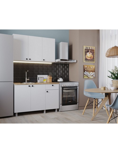 Характеристики: В комплект не входит мойка, смеситель, стеновая панель (фартук), сушилка для посуды, бытовая техника. Высота верхних тумб - 69 см, глубина верхних тумб - 30,5 см, высота нижних тумб - 81,8 см, глубина нижних тумб - 42,6 см, толщина столешницы - 2,8 см, глубина столешницы - 60 см