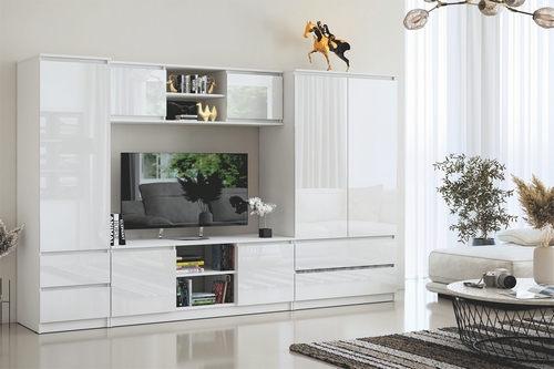 Особенности: Гостиная Челси комплект 1 - это лучшее решение для вашего уюта. Разнообразие вместительных зон для хранения позволяет создать комфортную зону для отдыха. Коллекция в элегантном дизайне. Комплект Челси состоит из: шкафа двухстворчатого, тумбы под ТВ, антресоли и пенала. Штанга для вешалок в комплекте. Дверцы шкафа - распашные. Направляющие ящиков - шариковые.