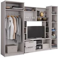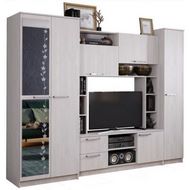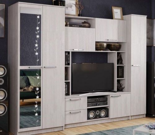 Технические характеристики: Гостиная состоит из: шкафа, пенала, тумбы под ТВ, открытых и закрытых полок. Шкаф оснащен штангой для вешалок и антресольной полкой, пенал оснащен четырьмя полками. ТВ-тумба с двумя выдвижными ящиками. На зеркало шкафа нанесен рисунок со стразами Swarovski. Рисунок обладает влагоустойчивостью. Размеры ниши под ТВ: ширина - 100 см, глубина - 43,2 см, высота - 79,8 см.
