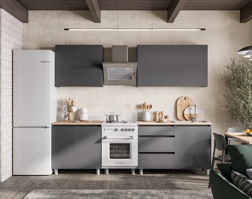 Дополнительно: Готовая кухня Денвер 2 м графит серая/сонома имеет однотонные матовые фасады приятного серого оттенка без лицевой фурнитуры. Фурнитура дверок: накладные петли. Роликовые направляющие ящиков. опоры 10 см. Комплектация (ШхГхВ): Стол под мойку: 120х42.6х82. Стол 2 двери: 80х42.6х82. Шкаф 2 двери: 80х28х71.6. Шкаф 2 двери: 120х28х71.6. Столешница: 120х60х2.6. Столешница: 80х60х2.6.