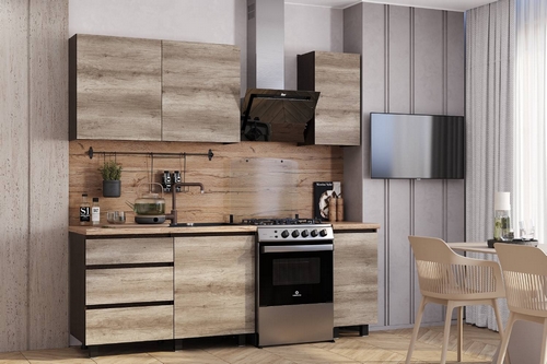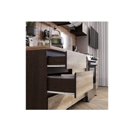 Особенности: Готовая кухня Энигма выполнена в красивом сочетании цветов дуб каньон и венге, что позволяет ей гармонично вписаться в любой интерьер. Кухонный гарнитур состоит из двух навесных (4В1-2, 12В2-2) и двух напольных (4Р1-2, 12Р2-2) шкафов шириной 40 см и 120 см. Напольные модули в комплекте со столешницей толщиной 38 мм в цвете дуб кера. Выдвижные ящики оснащены роликовыми направляющими 450 мм и открываются за счет среза на фасадах, которые обеспечивают удобный захват, а также придают гарнитуру монолитный вид. Крепление к стене - навес плоский. Устойчивые черные опоры - 10 см под клипсу. Максимальная нагрузка на ящик - 5 кг, на полку - 10 кг Края изделия отделаны кромкой 0,4 мм, что придает ему аккуратный и законченный вид. Можно компоновать с другими модулями из серии мебели Энигма. Реальный цвет товара может отличаться от цвета товара на фотографии. Поставляется в разобранном виде.
