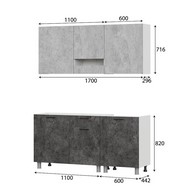 Особенности: Готовая кухня Розалия (цемент светлый/цемент темный) без столешницы является компактным и функциональным решением для вашего дома. Подходит для меблировки кухонного пространства в современном и сдержанном дизайне. Направляющие ящиков: Роликовые Максимальная нагрузка на ящик: 5 кг Максимальная нагрузка на полку: 10 кг Столешница комплектацией не предусмотрена.
