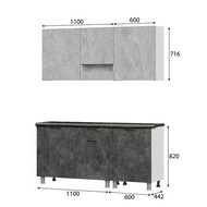 Особенности: Готовая кухня Розалия (цемент светлый/цемент темный) без столешницы отличается современным минимализмом в сочетании с функциональностью и удобством использования. Направляющие ящиков: Роликовые Максимальная нагрузка на ящик: 5 кг Максимальная нагрузка на полку: 10 кг Столешница в комплекте (1700х600х26 мм).