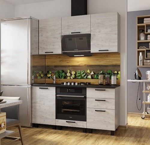 Дополнительно: Готовая кухня Сканди 1.6 м, бетон пайн выполнена в стиле лофт. Столешница в комплект не входит. Ящики с направляющими. В комплекте стильные черные ручки.