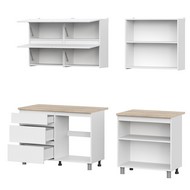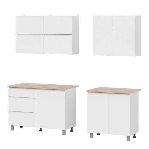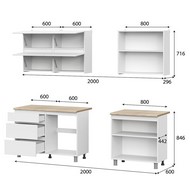 Особенности: Петли без доводчиков. Роликовые направляющие ящиков. Все модули комплектуются столешницей 26 мм.