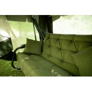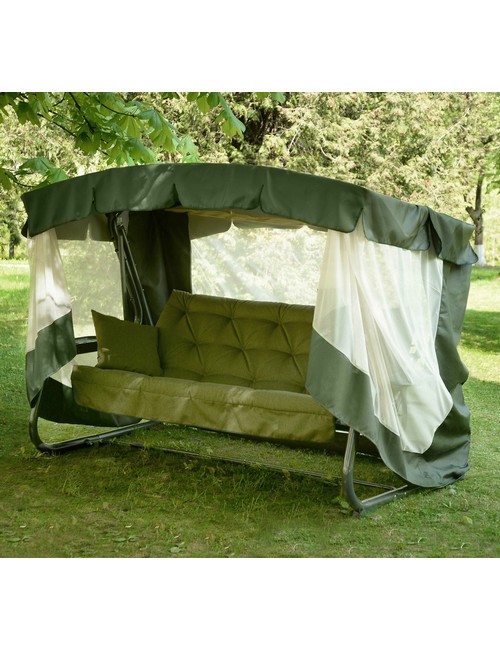 Дополнительно: максимальная нагрузка на садовые качели Саванна - 320 кг. Регулировка спинки - Да. Подушки - Да. Москитная сетка - Да. Подголовник - Да. Подстаканники - Да. Механизм наклона - с помощью ручки трансформации (фиксаторы, расположенные на спинке, защелкиваются на дуге).