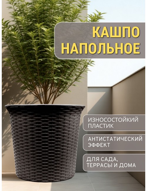 Кашпо садовое под ротанг 50л СадКо (темно-коричневый)