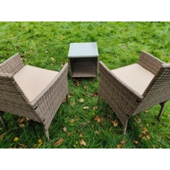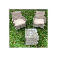Дополнительно: Комплект состоит из трех предметов - стол кофейный и два кресла. Кресла укомплектованы подушками из плотной водонепроницаемой ткани Оксфорд 300Д толщиной матраса 5 см. Столешница из закаленного стекла толщиной 6 мм. Стальной каркас с порошковым покрытием и ручное плетение из искусственного ротанга.