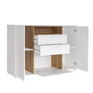 Особенности: Большой комбинированный комод Бэль 10.95 является стильным и функциональным предметом мебели, который отлично дополнит любой интерьер. Комод включает два боковых отсека с дверцами, а по центру - открытую нишу, два выдвижных ящика и отсек с откидной дверцей. Распашные двери оснащены на четырехшарнирными петлями. Выдвижные ящики - фолдинги на шариковых направляющих. Корпус и фасады комода выполнены в цвете белый премиум, а открытая ниша и внутренние две стенки - в оттенке дуб крафт золотой. Лаконичные ручки из ABS-пластика в цвете сатин добавляют современности и элегантности. Комод Бэль можно комбинировать с другими элементами коллекции, что позволяет создать гармоничный и стильный интерьер. Благодаря качественным материалам и надежной фурнитуре, комод прослужит долгое время, оставаясь актуальным элементом мебели.