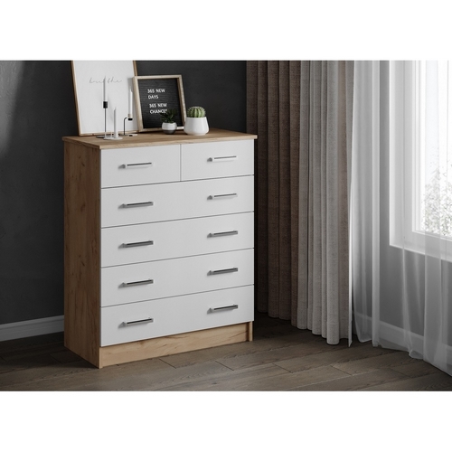 Особенности Комода большого Катрин 5: Выдвижные ящики установлены на роликовых направляющих. Максимальная распределенная нагрузка для выдвижных ящиков на дно 8-10 кг. Нагрузка для верхних маленьких ящиков - 5 кг.