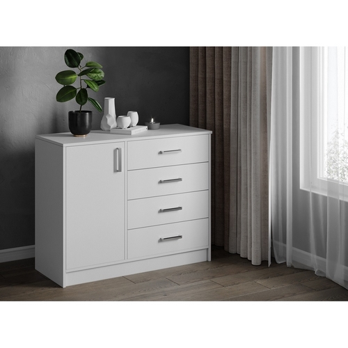 Особенности Комода большого Катрин 6: Комод с двумя секциями: отделение с распашным фасадом и выдвижные ящики. Выдвижные ящики установлены на роликовых направляющих. Максимальная распределенная нагрузка для выдвижных ящиков на дно 8-10 кг.