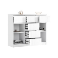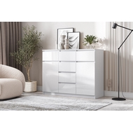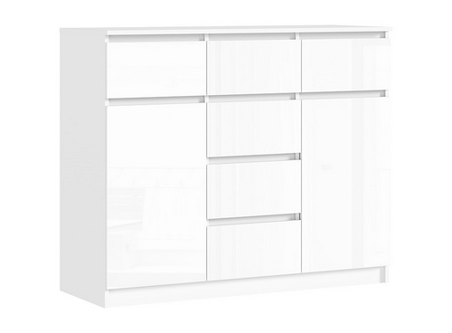 Особенности: Комод Челси 1200 2 двери 6 ящиков (белый глянец холодный, белый) в современном дизайне. Вместительные ящики и полки позволят организовать место хранения всех необходимых предметов. Количество ящиков - 6 шт. Направляющие ящиков - шариковые. Максимальная нагрузка на поверхность - 15 кг. Максимальная нагрузка на полку - 5 кг. Максимальная нагрузка на ящик - 5 кг. Опоры - пластиковые.
