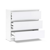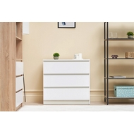 Особенности: Комод Челси 800 3 ящика (белый глянец холодный, белый) в современном дизайне. Вместительные ящики и полки позволят организовать место хранения всех необходимых предметов. Количество ящиков - 3 шт. Направляющие ящиков - шариковые. Максимальная нагрузка на поверхность - 15 кг. Максимальная нагрузка на ящик - 5 кг. Опоры - пластиковые.