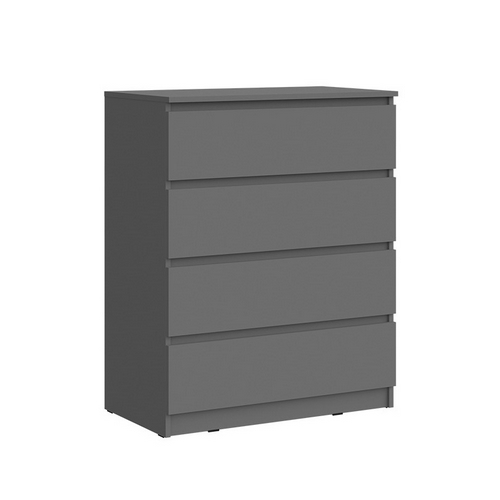 Особенности: Комод Челси 800 4 ящика (графит) в современном дизайне. Вместительные ящики и полки позволят организовать место хранения всех необходимых предметов. Количество ящиков - 4 шт. Направляющие ящиков - шариковые. Максимальная нагрузка на поверхность - 15 кг. Максимальная нагрузка на ящик - 5 кг. Опоры - пластиковые.