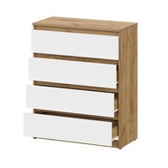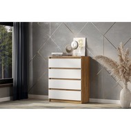 Технические характеристики: Комод Денвер (дуб золотистый, белый). Стильный и практичный комод, сочетающий в себе светлую, уютную эстетику и продуманную функциональность. Идеально подходит для хранения белья, одежды, аксессуаров и других личных вещей в спальне, прихожей или детской комнате. Четыре выдвижных ящика одинакового размера обеспечивают удобное систематизированное хранение, позволяя разделить вещи по категориям. Роликовые направляющие обеспечивают базовое выдвижение ящиков, они надежны и просты в эксплуатации. Модель не занимает много места, оставаясь при этом очень вместительной. Комод Денвер - это отличное соотношение цены, качества и дизайна, предлагающее простое и эффективное решение для поддержания порядка в вашем доме.