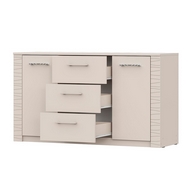 Особенности: Комод двухстворчатый Калипсо выполнен из качественного ЛДСП, что обеспечивает его долговечность и устойчивость к повреждениям. Он состоит из двух просторных секций с дверцами по бокам и трех выдвижных ящиков по центру. Комод Калипсо предоставляет собой удобное и практичное решение для хранения различных предметов: от предметов гардероба до мелких вещей и аксессуаров. Благодаря надежным роликовым направляющим, ящики легко открываются и закрываются.