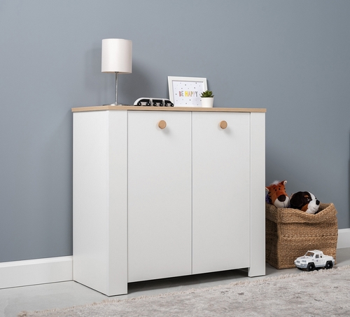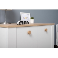 Особенности: Комод Джастин 16.228.02 выполнен в скандинавском стиле и сочетает в себе светлые тона и лаконичный дизайн. Он станет универсальным элементом интерьера, подходящим для жизни, учебы, отдыха и игр. Двустворчатый комод оснащен удобными полками, обеспечивающими эффективную систему хранения. Модель подходит для различных возрастных категорий благодаря своей функциональности и нейтральному дизайну. Корпус комода выполнен в цвете белый шагрень, а столешница — в теплом оттенке дуб белый, что придает изделию современный и стильный вид. Ручки-кнопки изготовлены из натурального массива дуба и добавляют интерьеру природную эстетику.