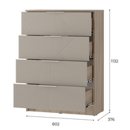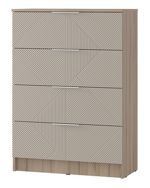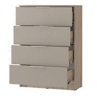 Особенности: Эффектные торцевые ручки-язычки. Фрезеровка на фасадах МДФ. Комод Эмилия КМ-02 оснащён шариковыми направляющими ящиков. Максимальная нагрузка на крышку 10 кг. Максимальная нагрузка на ящик 5 кг. Cтиль современный.
