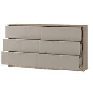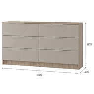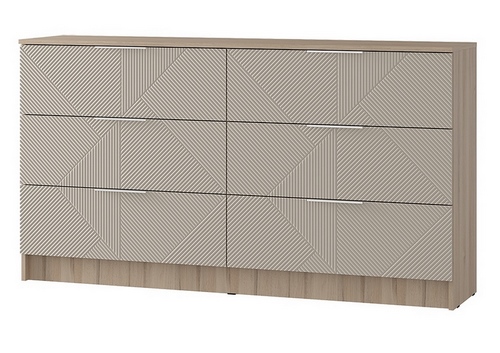 Особенности: Комод Эмилия КМ-04 оснащён шестью выдвижными ящиками Эффектные торцевые ручки-язычки. Фрезеровка на фасадах МДФ. Направляющие ящиков шариковые. Максимальная нагрузка на крышку 10 кг. Максимальная нагрузка на ящик 5 кг. Cборка согласно рисунку фрезеровки. Cтиль современный.