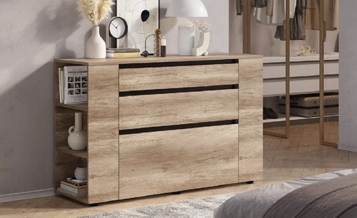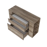 Особенности: Максимальная нагрузка на полку - 10 кг. Максимальная нагрузка на ящик - 5 кг. Шариковые направляющие 350 мм. Толщина кромки – 0,4 мм. Дуб каньон кромится в цвет корпуса. Фасадные части цвета дуб каньон кромятся цветом венге. Интегрированный срез на фасаде. Опоры под саморез высотой 27 мм.
