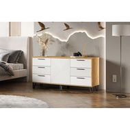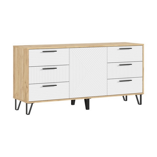 Особенности: Комод Флэш 1500 (браш вайт, дуб крафт) выполнен в современном стиле. Вместительные ящики и полки позволят организовать место для хранения всех необходимых предметов. Двери - распашные. Количество ящиков - 6 шт. Направляющие ящиков - шариковые. Максимальная нагрузка на поверхность - 20 кг. Максимальная нагрузка на полку - 4 кг. Металлические ручки. Пластиковые опоры.
