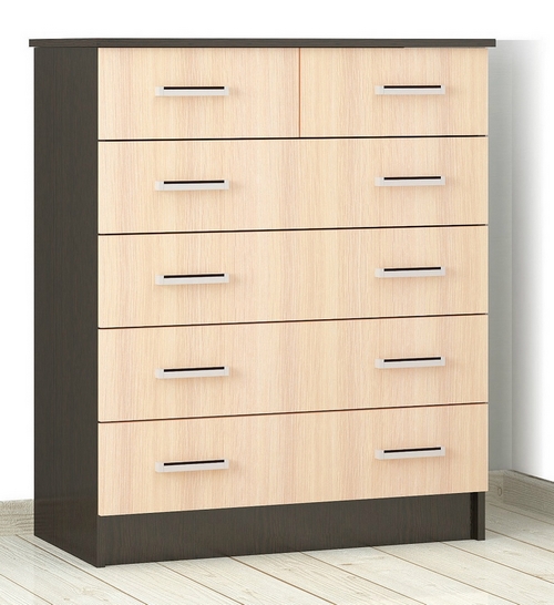 Технические характеристики: Комод оснащен шестью выдвижными ящиками (4 больших и 2 маленьких). Поставляется в разобранном виде.