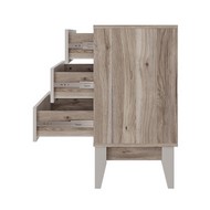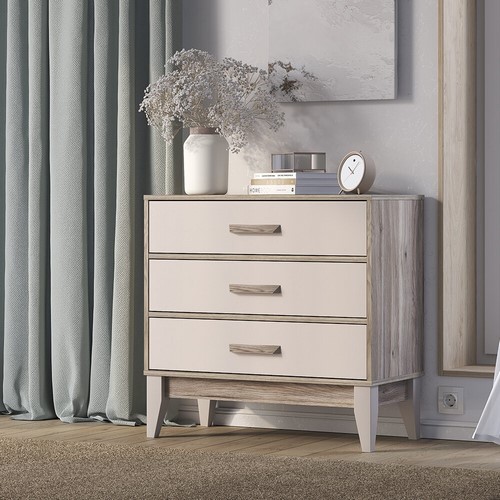 Дополнительно: Комод КМ-01 Скандика имеет 3 вместительных выдвижных ящика с плавным механизмом открытия. Шариковых направляющие ящиков. Комод подойдет для спальни, гостиной или прихожей. Эмалированные деревянные опоры из бука высотой 20 см. Максимальная нагрузка на ящик - 5 кг. Имитация текстуры натурального дерева.