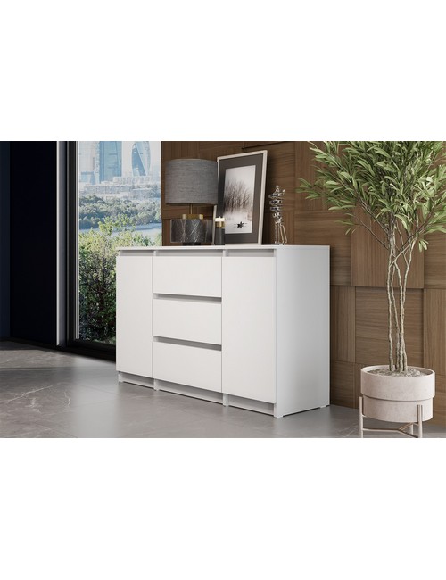 Технические характеристики: Комод комбинированный Денвер белый имеет три вместительных ящика и полки за распашными дверьми. Скрытая фурнитура. Направляющие роликовые. Нагрузка на ящики 5 кг.