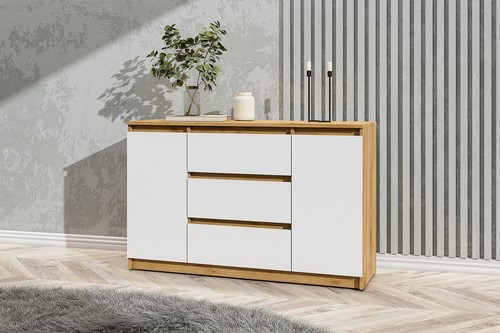 Особенности: Комод комбинированный Денвер (дуб золотой/белый) имеет скрытую фурнитуру и роликовые направляющие ящиков для комфортного использования. Максимальная нагрузка на ящики: 5 кг.