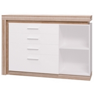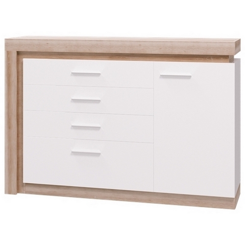 Технические характеристики: Комод с 4-мя ящиками и распашной дверцей. В закрытом отделении расположена полка. Шариковые направляющие полного выдвижения. Возможна комплектация со светодиодной подсветкой, которая приобретается отдельно. Цвет может отличаться от представленного на фотографии.