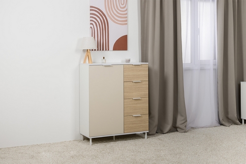 Особенности: Комод Марвэл 16.234.01 выполнен в стильном сочетании белого корпуса с яркими фасадами в цвете сатин и плэйн. Комод состоит из четырех выдвижных ящиков и отсека с выдвижной металлической штангой и дверцей. Ящики оснащены шариковыми направляющими. Металлические опоры с регулировкой. Фасады оснащены торцевыми металлическими ручками. Можно компоновать с другими модулями из серии мебели Марвел. Реальный цвет товара может отличаться от цвета товара на фотографии. Поставляется в разобранном виде.