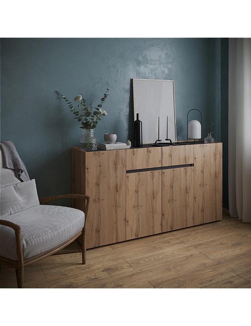 Технические характеристики: Комод Мика 1604 (дуб вотан, графит) - вместительный комод, который создаст порядок в любом помещении. Комод выполнен из прочных и износостойких материалов. Внутреннее наполнение комода включает в себя два больших выдвижных ящика и удобные полки. Дверцы комода распашные. Ящики со скрытыми ручками.<Открываются и закрываются плавно и бесшумно, благодаря специальным механизмам скольжения.