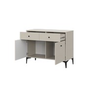 Технические характеристики: Комод MOON КМ-1.1 (кашемир). Современный комод, отличающийся элегантным дизайном и безупречной функциональностью. Модель выполнена в классическом цвете, что позволяет ей гармонично вписаться в любой интерьер - от спальни до гостиной. Комод MOON КМ-1.1 оснащен двумя вместительными выдвижными ящиками и двумя распашными дверцами, что обеспечивает удобное разделение пространства для хранения различных категорий вещей. Элегантные металлические ручки добавляют модели стильный акцент и обеспечивают комфортное использование. Петли с доводчиком для плавного и бесшумного закрывания. Направляющие ящика - шариковые. Металлические ножки высотой 15 см. Комод MOON КМ-1.1 - это гармоничное сочетание стильного дизайна, качественной фурнитуры и продуманной организации пространства, которое станет практичным и эстетичным дополнением вашего интерьера.