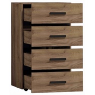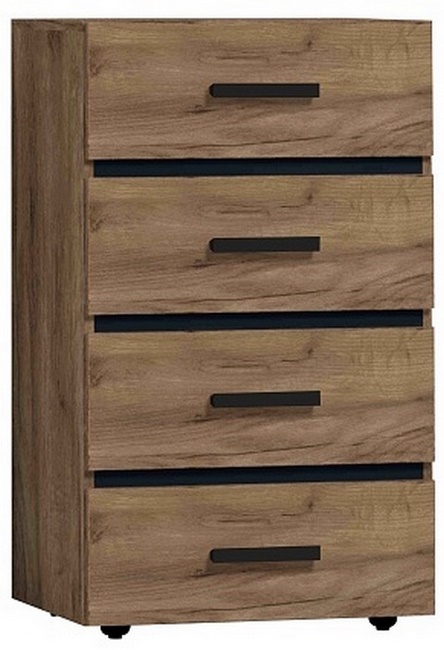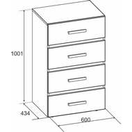 Технические характеристики: Комод с четырьмя выдвижными ящиками полного выдвижения. Регулируемые опоры, которые помогут компенсировать неровности пола. Выдерживает нагрузку до 20 кг. Ящики на шариковых направляющих.