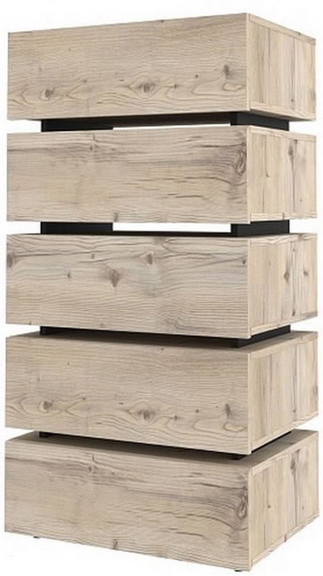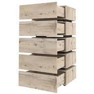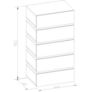 Технические характеристики: Регулируемые опоры, которые помогут компенсировать неровности пола. Выдерживает нагрузку до 20 кг. Комод оснащен пятью ящиками с гладкими фасадами. Каждый ящик открывается за свес. Глубина ящика - 14 см.