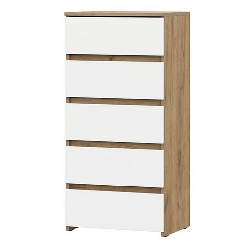 Особенности: Комод Некст 1 с 5 ящиками (дуб золотой/белый) оснащен шариковыми направляющими и скрытой фурнитурой.