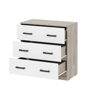 Особенности: Комод из модульной серии Ронда идеально впишется в современный интерьер комнаты. Вместительные ящики позволят организовать место хранения для всех необходимых предметов. Количество ящиков - 3 шт. Выдвижные ящики на шариковых направляющих. Максимальная нагрузка на ящик - 5 кг. Пластиковые опоры.