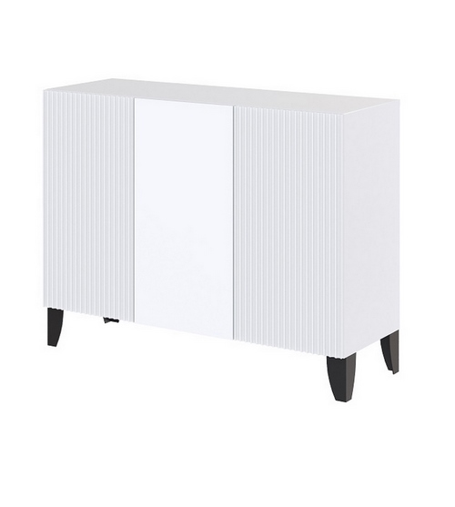 Дополнительно: Дизайн комода Сириния отличается изысканностью и лаконичностью: трендовая вертикальная фрезеровка фасада гармонично смотрится в современном интерьере. Пространство за распашными дверями разделено полками, что позволит разместить аксессуары, книги и разноплановые вещи в любом помещении. Петли без доводчиков. Опоры черные пластиковые. Роль ручек выполняют торцы фасадов.